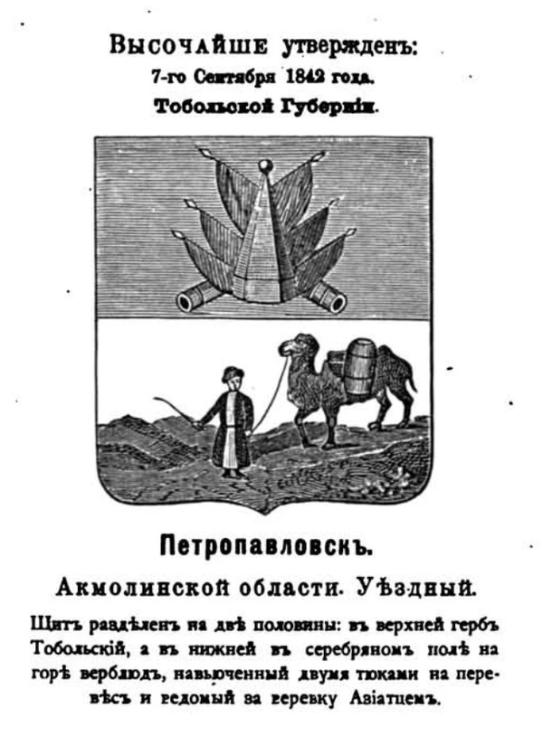 7 сентября 1842 года (законом № 16351) утверждён герб уездного города Петропавловска (Тобольская губерния). На гербе изображено в верхней части щита герб Тобольска, а в нижней