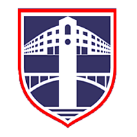 Герб города представляет собой синий щит с белым контуром. Поверх белого находиться красный контур. В нижней части герба расположены три белые полосы, которые представляют три реки проходящие через город. Также на гербе изображены: