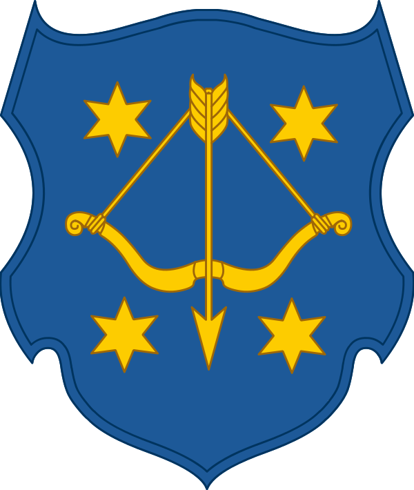 - Лук со стрелой и звезды — элементы, которые входили в гербы Полтавы, Пирятина, указывают на историческую роль края в обороне родных земель, а также на город Полтава, как административный центр области.