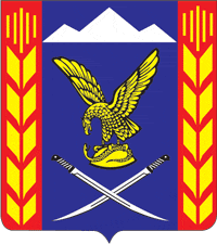 В центре лазоревого щита — золотой орёл, терзающий змею и обращённый вправо; во главе щита серебряная гора с тремя вершинами, та, что в центре, большего размера; в основании щита серебряные скрещённые казачьи шашки; по бокам щита червлёные столбы, обременённые золотыми стилизованными колосьями.