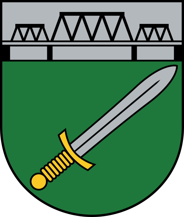 Описание герба Скрундского края было утверждено 19 сентября 2009 года государственным президентом и председателем геральдической комиссии Латвии — «в зелёном поле серебряный меч с золотой рукоятью, в серебряной главе — железнодорожный мост». В гербе изображён железнодорожный мост через реку Венту, построенный в 1926—1928 годах из чехословацкого металла.