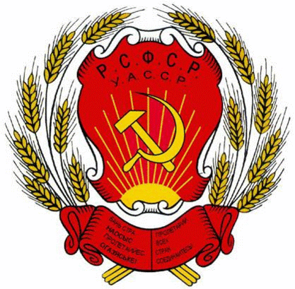 "Государственным гербом Удмуртской Автономной Советской Социалистической Республики является государственный герб Р.С.Ф.С.Р., который состоит из изображения золотых серпа и молота, помещенных крест - накрест, рукоятками книзу, на красном фоне в лучах солнца и в обрамлении колосьев с надписью "Р.С.Ф.С.Р." и "Пролетарии всех стран, соединяйтесь!" на русском и удмуртском язках, с добавлением под надписью "Р.С.Ф.С.Р." букв меньшего размера "Удмуртская А.С.С.Р." на русском и удмуртском языках"
