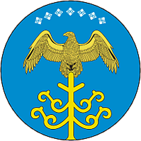 26 декабря 2005 года было утверждено Положение о гербе района. Описание герба района гласило: «Герб представляет собой круглый геральдический щит голубого цвета, в центральной части которого изображён орёл сидящий на священное золотое дерево „Арча“. В верхней части щита обрамление с семи ромбических кристаллообразных фигур». [3]