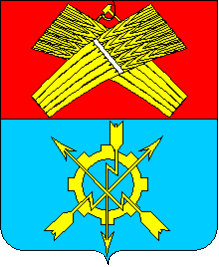 Описание: Герб сохранил двухуровневую структуру герба времён Российской Империи, то есть щит герба был разделён на две части: верхнюю и нижнюю. Цвет нижней части остался лазурным, а цвет верхней части был изменён на красный. В верхней части были изображены два перекрещенных снопа пшеницы золотистого цвета (символ аграрного края), над которыми изображен серп и молот. В нижней части была изображена шестерня золотого цвета. Три стрелы предыдущих гербов трансформировались в заломленные перекрещенные молнии[5].