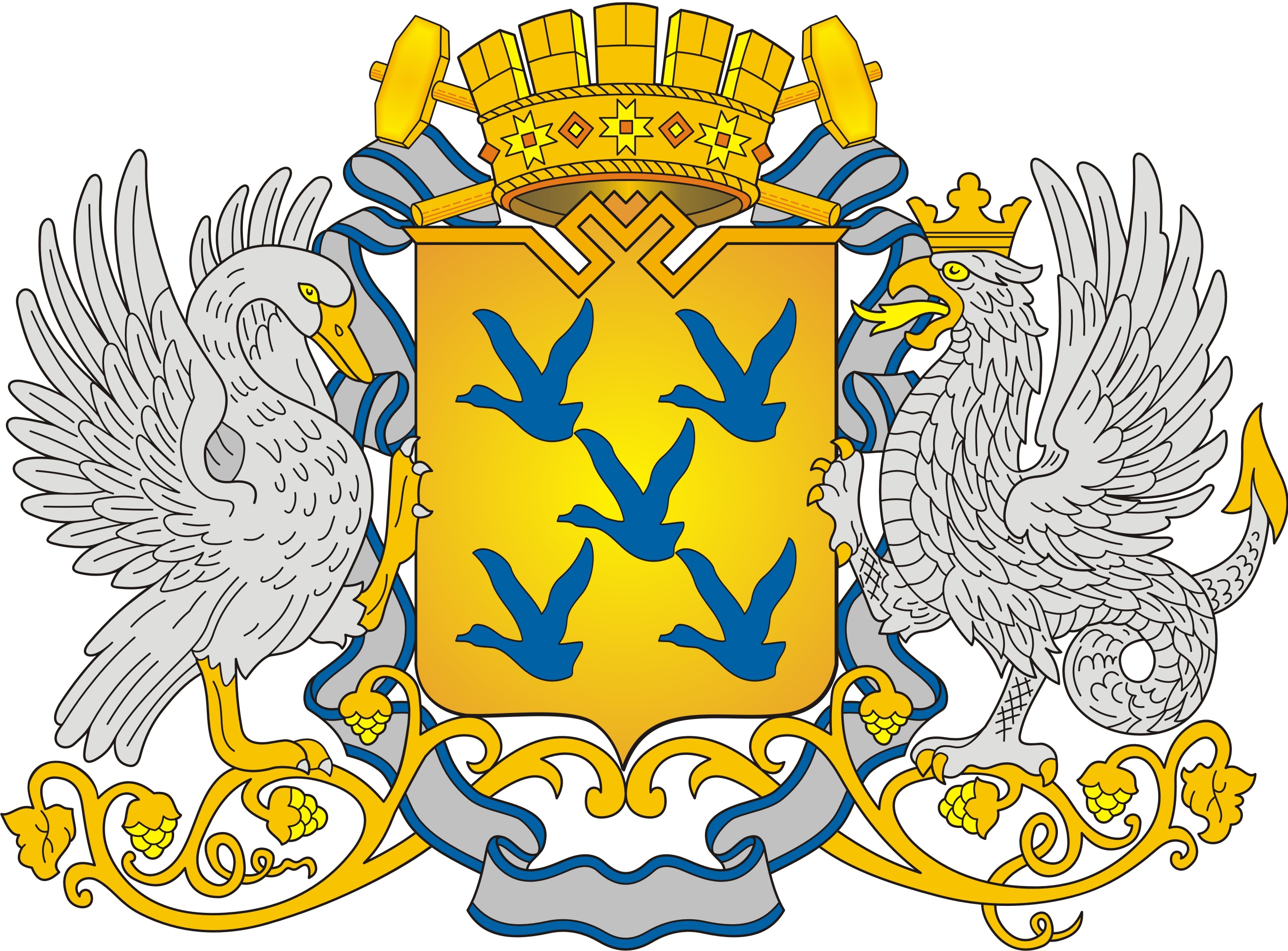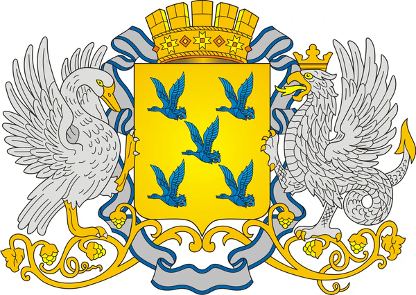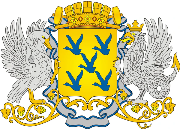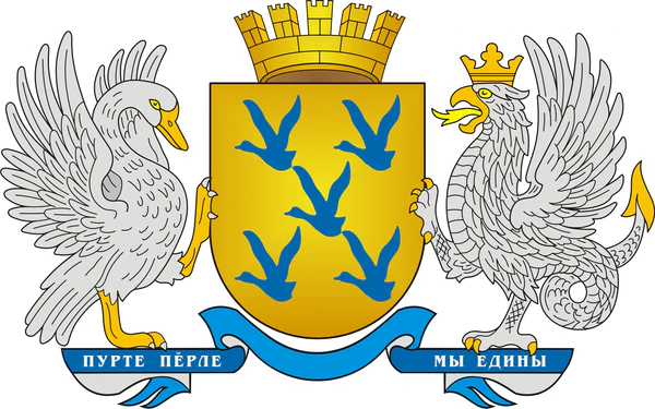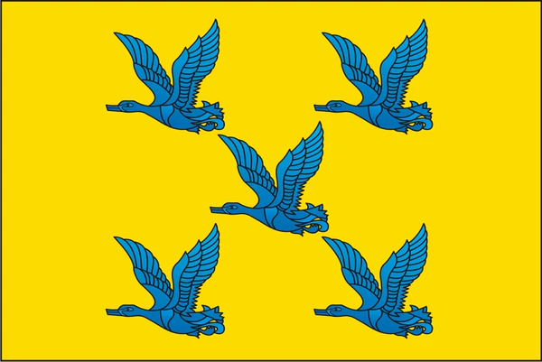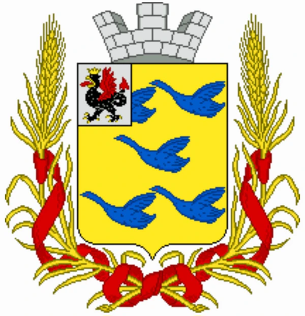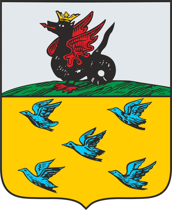 Щитодержатели: серебряный лебедь с золотыми глазами, клювом и лапами и с серебряными когтями, и серебряный дракон, коронованный золотом, с золотыми глазами, клювом, когтями, пламенем, выходящим из клюва, и жалом на конце хвоста. Подножие – золотые стебли хмеля.