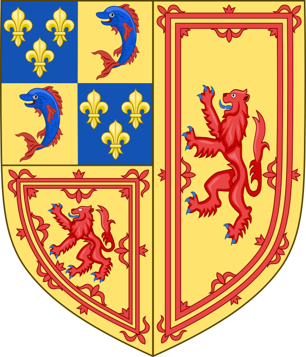 Парная внутренняя червлёная, снаружи и внутри переменно усаженная лилиями кайма известна как royal tressure — «королевская кайма». Лилии в королевской кайме традиционно символизируют «Старый союз» с Францией, что маловероятно, так как этот союз возник только в XIII веке, когда королевская кайма прочно утвердилась в качестве части герба по прошествии многих лет. Возможно она была добавлена лишь для того, чтобы сделать герб более отличительным, поскольку изображение льва уже использовался несколькими лордами и королями.