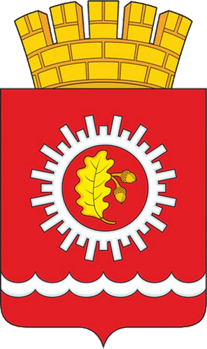 Безант (круг), расположенный внутри зубчатого кольца - символ вечности, совершенства, непрерывного развития, концентрации умственных, интеллектуальных, физических сил, богатства. Он также является аллегорией на колесо и символизирует железную дорогу, при строительстве которой в 1916 году был заложен город. Дубовый лист с желудями напоминает о многочисленных местных дубравах, произраставших во времена основания города. Дуб-символ силы и вечной жизни. Зеленый цвет символ природы, здоровья, молодости, жизненного роста. Благодаря дубу началось развитие города. Объединенные в единую композицию безант и дубовый лист аллегорически рассказывают о химической промышленности (дубильно-экстрактовом заводе), давшей старт промышленному росту города.