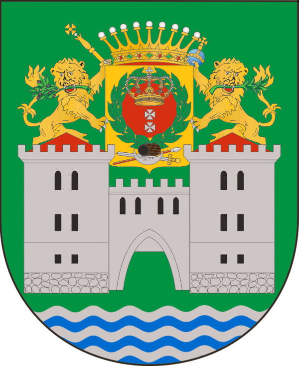 В зелёном поле серебряный зубчатый замок с двумя башнями с красными остроконечными крышами и открытыми воротами. Между башнями на крышах золотой щиток, на котором овальный зелёный лавровый венок, внутри которого поле красное, обрамленное золотой королевской короной, сопровождаемой внизу двумя серебряными кавалерскими крестами в столб. В оконечности щитка сложенные в скошенный крест пика и меч, сопровождаемый вверху положенной на бок гарлатной шакой, а внизу серебряным полумесяцем с ликом, рогами вверх. На щитке графская корона. Щиток держит два золотых льва: правый держит в поднятой лапе скипетр, а в пасти лавровую ветвь, левый — в поднятой лапе голубую с золотом державу, а в пасти масличную ветвь. Оконечность поля: серебряно — синие волнистые полосы.