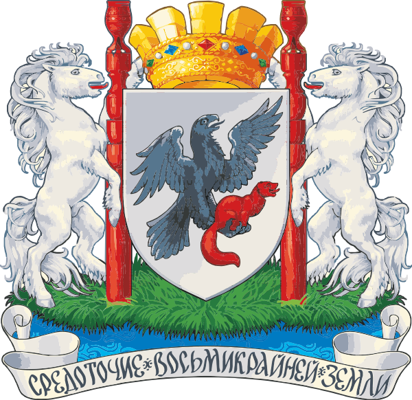 | Корона | золотая башенная о пяти зубцах, с двумя обручами: верхний — с самоцветами, нижний — с якутским орнаментом |