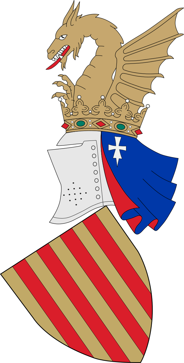 Хотя народные традиции Валенсии приписывают происхождение нашлемника крылатого дракона королю Хайме I, его происхождение можно проследить до короля Петра IV в XIV веке, когда нашлемники стали регулярно использоваться над благородными шлемами. По словам испанского историка Гильермо Фатаса Кабеса, его можно рассматривать как квазикантирующую эмблему, символический символ арагонского монарха. Мантия, защитная ткань, которую рыцари носили на шлемах, была тёмно-синей и украшена крестом Аристы[2].
