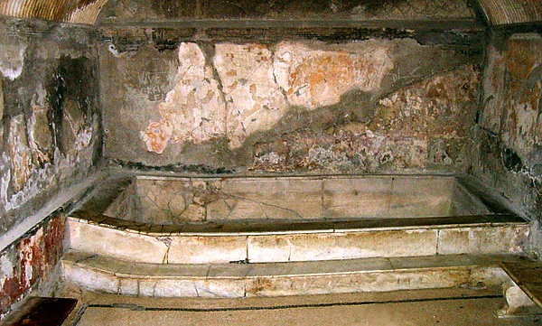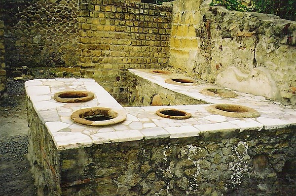 В Геркулануме был открыт и термополий с облицованным кусками разноцветного мрамора прилавком — так называлась античная харчевня, где подавали горячую еду и вино с пряностями. Блюда разогревались с помощью семи объёмных сосудов, встроенных в прилавок по самое горлышко, в которые наливалась горячая вода.