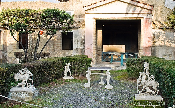 Дом Гения, раскопки которого проходили в 1828—1850 годах, назвали в честь статуэтки Купидона или Гения, составлявшей часть мраморного канделябра. Дом очищен от породы только частично, так как наполовину скрыт под современным Эрколано — можно увидеть только большой перистиль с прямоугольным фонтаном по центру.