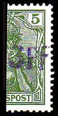 - май 1917 года — номинал 15 пфеннигов переиздан в изменённом цвете (вместо коричневого фиолетовый, фон светлый).