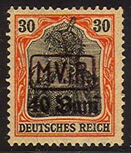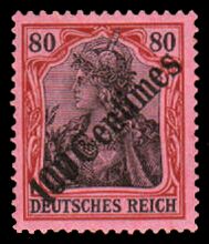 - июнь 1920 года — остаток тиражей образца 1902 года надпечатан — 1,25, 1,50 и 2,50 немецких марок. Серия дополняется номиналами 1, 1¼, 2 и 4 немецких марки.