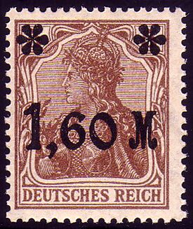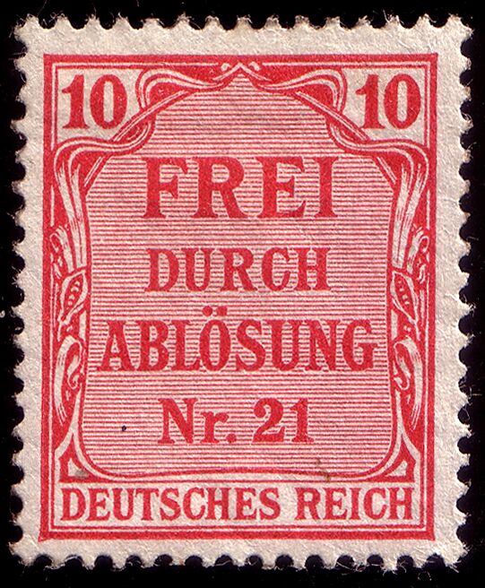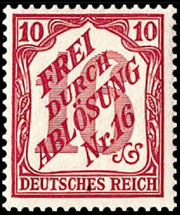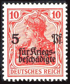 - май 1919 года — новорождённая Веймарская республика надпечатала номиналы 10 и 15 пфеннигов, сделав их почтово-благотворительными с доплатой жертвам войны +5 пфеннигов.