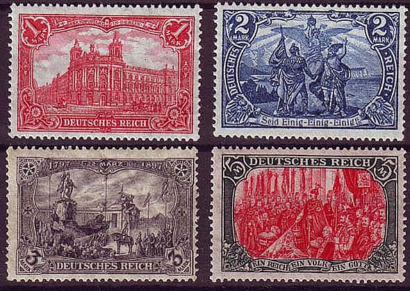 - апрель 1902 года — серия переиздана в тех же номиналах и цветах, но с надписью «Deutsches Reich».
