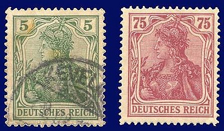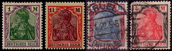 Поскольку «Германия» являлась основной стандартной серией почтовых марок империи, именно ей пришлось нести на себе следы всех связанных с этой страной исторических изменений начала XX века — чаще всего в виде надпечаток и перепечаток. В частности, следующим образом: