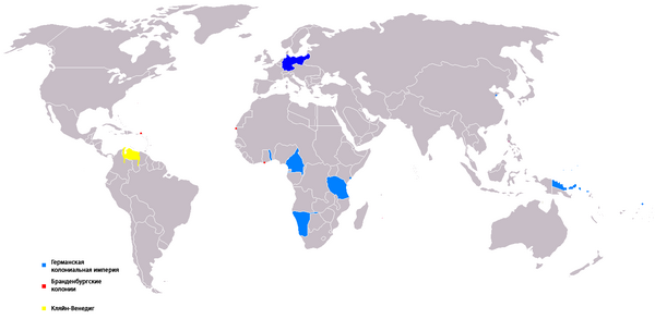 После этого фон Бисмарк объявил, что колониальная политика не является приоритетом для Германской империи. Ещё в 1864 году после Датско-прусской войны Дания безуспешно предлагала Пруссии и Австрии Датскую Вест-Индию, пытаясь избежать полной потери Шлезвига[2]. В 1870 году после Франко-прусской войны было отклонено предложение Франции о передаче Кохинхины взамен Эльзас-Лотарингии или контрибуции. Однако уже в 1873 году было образовано «Африканское общество в Германии» (нем. Afrikanische Gesellschaft in Deutschland), которое ставило себе целью исследование Африки. В 1882 году появилось «Немецкое колониальное общество» (нем. Deutscher Kolonialverein), объединившее свыше 15 000 сторонников колониальной политики. В 1887 году оно объединилось с созданным в 1884 году «Обществом за немецкую колонизацию» (нем. Gesellschaft für Deutsche Kolonisation), ставившим своей целью практическую реализацию этой политики.