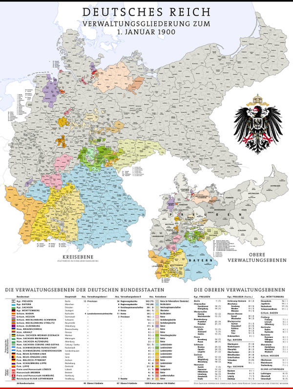 - Германская империя; Административные единицы и Население Земли 1900—1910 Годов