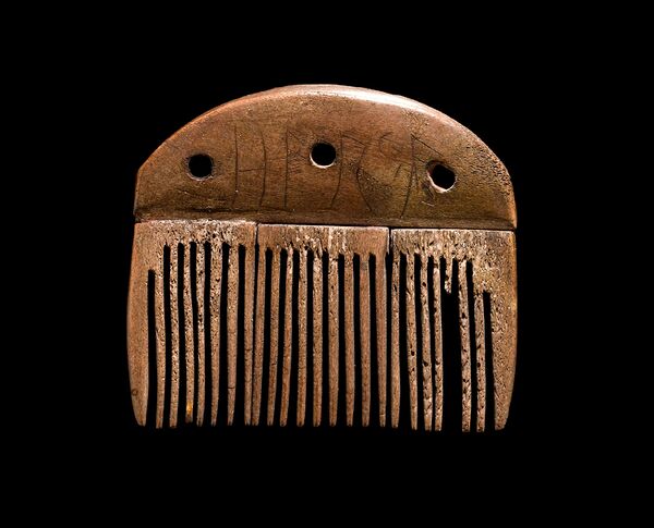 Всего известно порядка 150 предметов (детали вооружения, амулеты, надгробные камни) с ранними руническими надписями III—VIII вв.[46]. Одна из самых ранних надписей (raunijaz : «испытывающий») на наконечнике копья из Норвегии датируется ок. 200 годом[47], ещё более ранней рунической надписью считается надпись на костяном гребне, сохранившемся в болоте на датском острове Фюн. Надпись переводится как harja (имя или эпитет) и датируется 2-й половиной II века.