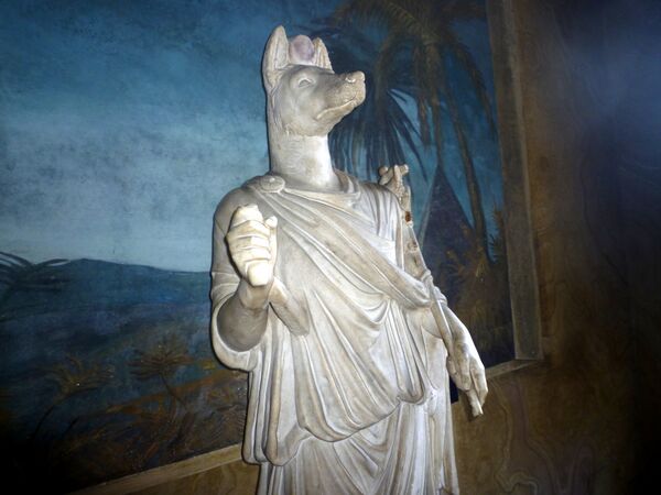 Также Гермеса отождествляли с другим древнеегипетским богом, связанным с захоронением, мумификацией и культом мёртвых в целом, Анубисом. Германубиса, расцвет популярности которого пришёлся на период римского владычества в Египте, изображали в виде человека с головой шакала с атрибутом Гермеса кадуцеем в руках. Плутарх приписывал этому божеству присутствие как в небесных сферах, так и в подземном мире[78][79].