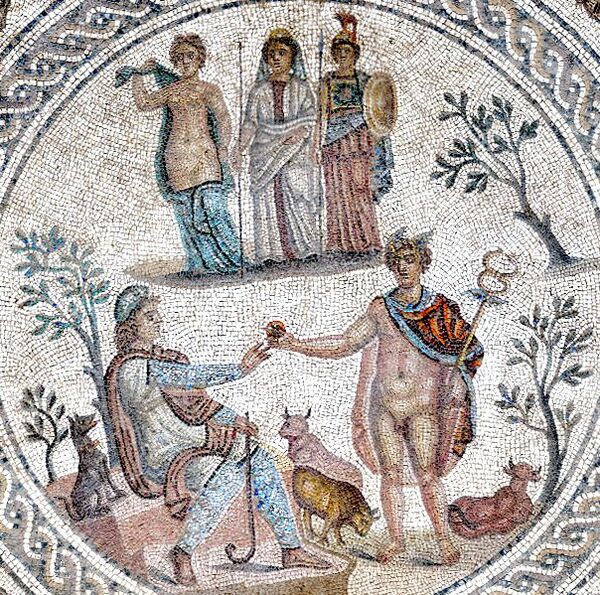 Несколько мифов передают любовную связь Гермеса с богиней любви и женской красоты Афродитой. По одному из них, Гермес возжелал Афродиту, но был отвергнут. Когда богиня купалась в реке Ахелой, Зевс послал орла, чтобы тот отнёс её сандалию в египетскую Амитаонию и вручил Гермесу. Афродита стала её искать и пришла к Гермесу, где тот насладился с ней любовью[143]. От их любовной связи родился Гермафродит, а также, по некоторым вариантам, Приап[144] и Эрот[145].