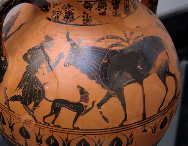 По одному из мифов, Зевс соблазнил жрицу своей жены Геры Ио. Находясь рядом с возлюбленной, верховный бог вовремя предугадал появление Геры и превратил Ио в прекрасную белую корову. Гера, почувствовав обман, заставила мужа подарить ей Ио в виде коровы. После она приставила к ней многоглазого и неусыпного сторожа Аргуса. Обладая множеством глаз, он никогда не был полностью погружённым в сон: когда одни глаза спали, то другие бодрствовали[118][119][81].