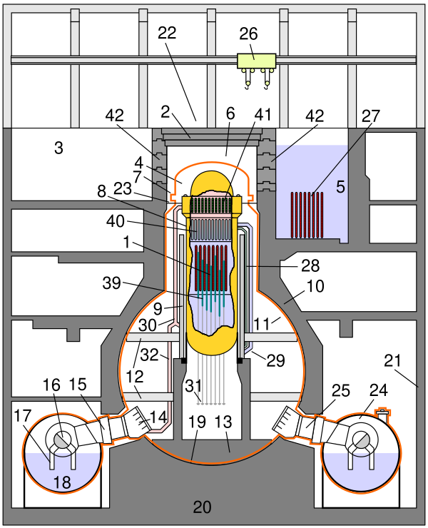 - c ледовым конденсатором в пределах гермооболочки, который способен конденсировать пар в случае аварии (например, станции «Секвойя» и Уоттс Бар в США)[9];