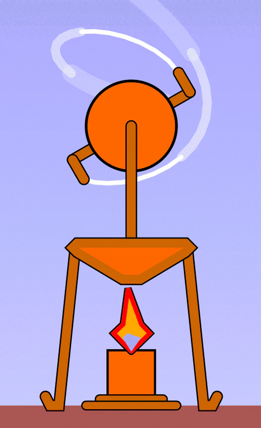 Геронов шар состоит из нагретого котла и турбины в виде сферы на оси. По кругу шар имеет два патрубка (сопла), направленных противоположно. Из котла пар подается к шару через полую ось и вылетает из неё через сопла. Внутренняя энергия водяного пара превращается в механическую энергию вращения шара. Геронов шар является прообразом реактивных двигателей.