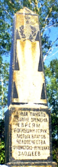 - В 1954 году Ефим Исаакович Рутман, местный уроженец, воевавший на фронте и вернувшийся в Лукомль, своими руками изготовил и установил памятник на могиле убитых евреев (в том числе, и своих родных) недалеко от еврейского кладбища. Рутман и ещё один еврей из Лукомля Ханон Исаакович Лапус, тоже вернувшийся с фронта, завещали похоронить себя рядом с могилой погибших евреев. Так и получилось — Лапуса похоронили справа от памятника жертвам геноцида евреев, Рутмана — слева[4][1][5][8][9].