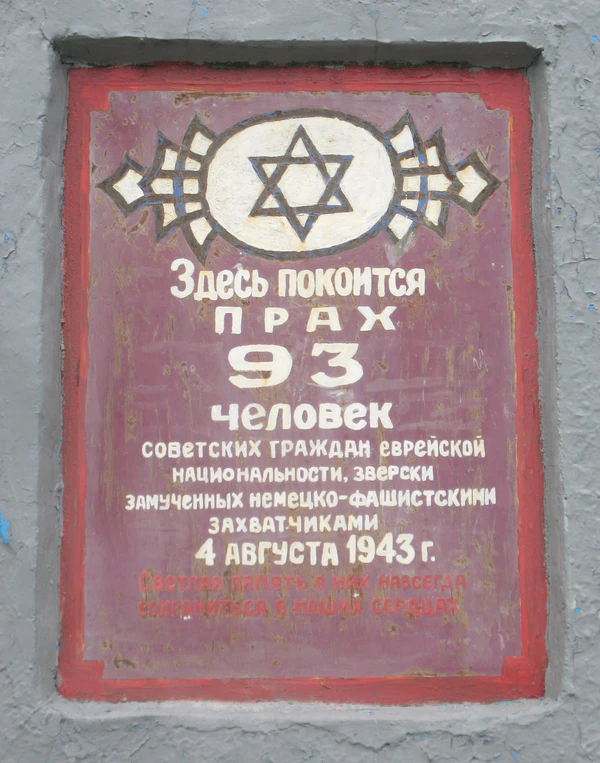 На месте расстрела 4 августа 1943 года (на улице Зелёной) памятник жертвам геноцида евреев был установлен в 1956 году[2].