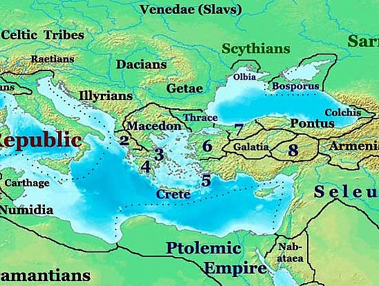 В середине I века до нашей эры владыкой всего Нижнего Подунавья стал Буребиста, которого источники называют то гетом, то даком. Его походы угрожали не только Фракии и городам западного побережья Понта, но даже границам римской провинции Македония[12]. После захвата власти Цезарь планировал совершить поход против гетов, однако его убийство предотвратило войну. Впрочем, Буребиста был убит в том же году, и с этого момента термин «геты» окончательно становится анахронизмом для обозначения новых народов, занимавших бывшую гетскую территорию.