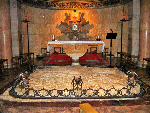 Католическая францисканская церковь Всех Наций построена в 1919—1924 годах. Перед алтарём находится камень, на котором, по преданию, молился Иисус в ночь своего ареста[8]. В храме всегда полумрак в память того, что события, которым он посвящён, происходили ночью. На потолке изображены 12 гербов государств, пожертвовавших деньги на её строительство. Стены украшены мозаиками: «Гефсиманское моление», «Поцелуй Иуды» и «Взятие Христа под стражу».