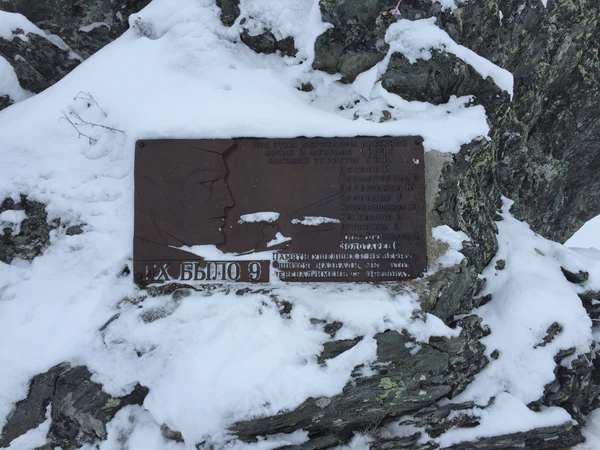 - На каменном останце близ перевала Дятлова экспедицией 1963 года установлена мемориальная доска в память о погибших. В 1989 году там установлена ещё одна мемориальная доска[163].