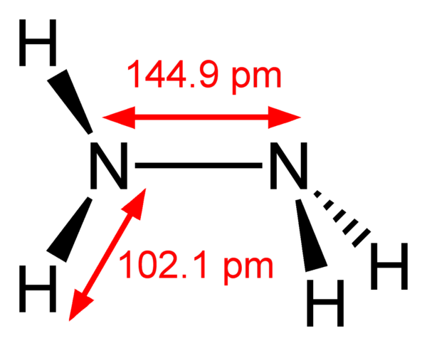 Термодинамически гидразин значительно менее устойчив, чем аммиак, так как связь N—N не очень прочна: разложение гидразина — экзотермическая реакция, протекающая в отсутствии катализаторов при 200—300 °C: