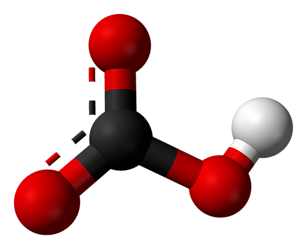 С угольной кислотой бикарбонат в сочетании с водой, ионами гидроксония и углекислым газом образует буферную систему, которая поддерживается в равновесии, необходимом для обеспечения устойчивости к изменениям pH. Это особенно важно для защиты тканей центральной нервной системы, где изменения pH, выходящие за пределы нормального диапазона в любом направлении, могут оказаться катастрофическими (см. ацидоз и алкалоз).