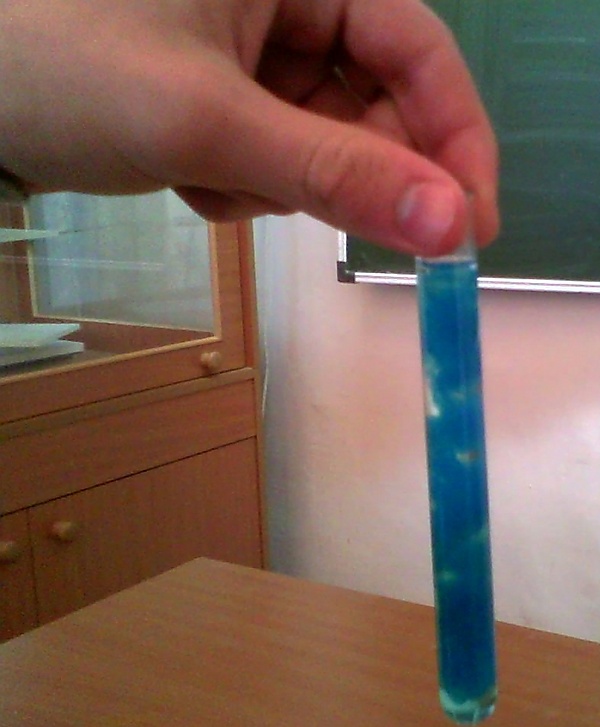 При стандартных условиях, гидроксид меди(II) — это голубое аморфное или кристаллическое вещество.