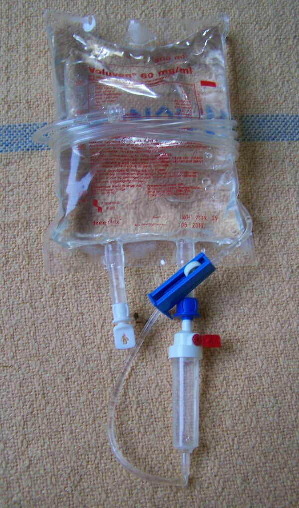 - Использование гидроксиэтилкрахмала вместе с физиологическим раствором противопоказан людям с выраженным повышением в крови уровня солей натрия или хлоридов.