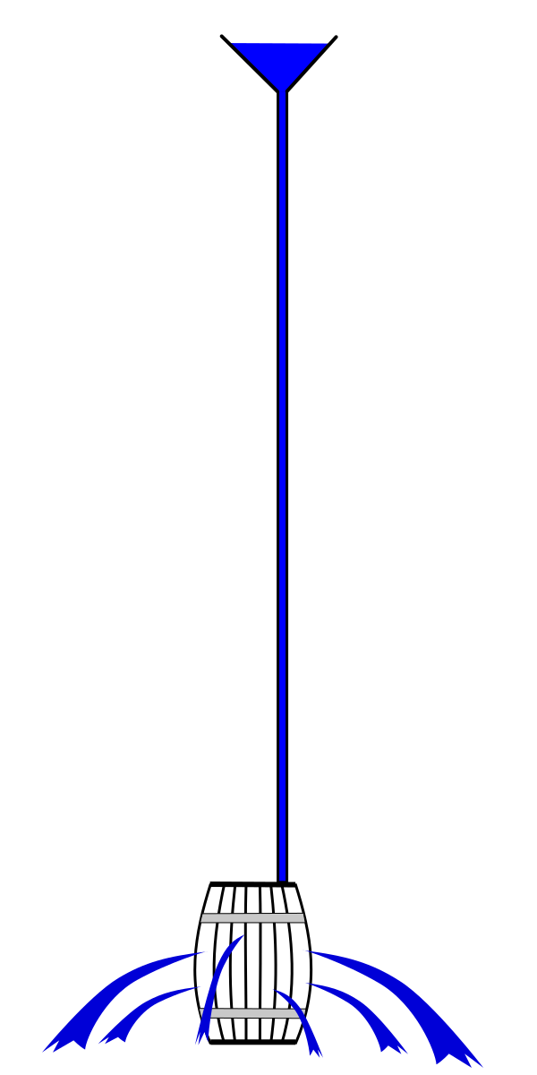 В 1648 году парадокс продемонстрировал Блез Паскаль. Он вставил в закрытую бочку, наполненную водой, узкую трубку и, поднявшись на балкон второго этажа, влил в эту трубку кружку воды. Из-за малого диаметра трубки вода в ней поднялась до большой высоты, и давление в бочке увеличилось настолько, что крепления бочки не выдержали, и она треснула.