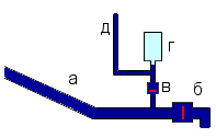 Этот механизм действует при помощи запаса механической работы, содержащегося в воде, текущей по трубе. В оригинальном приборе Монгольфье, устроенном в Сен-Клу, близ Парижа, вода притекает по длинной трубе (рис. 1) из невысоко расположенного пруда и может свободно вытекать через край , пока клапан опущен.