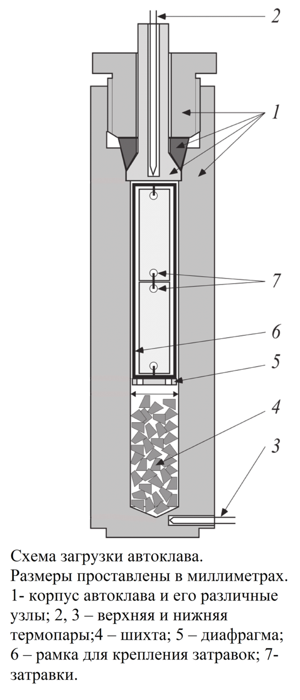 Процесс роста кристаллов в гидротермальных условиях происходит при высоких температурах и давлениях. Поэтому этот процесс ведут в специальных толстостенных сосудах – автоклавах, изготовленных из специальной высокопрочной коррозионно- и жаропрочной стали. Изображенный на рисунке автоклав не велик, его рабочий объем около 250 мл, что позволяет выращивать за один ростовой цикл около 100 г кристаллов изумруда. Автоклавы для гидротермального роста кристаллов кварца, например, гораздо больше – до 6 м3 и они позволяют выращивать до полтонны кристаллов за один ростовой цикл.