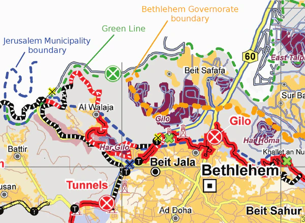 Гило был создан в 1973 году. По данным израильского муниципального планировщика, большинство земель Гило земли было законно приобретено евреями до Второй Мировой Войны, большей частью в 1930-х годах, и что еврейские землевладельцы не отказались от своей собственности на землю, когда этот район был захвачен Иорданцами в 1948 году[15]. Согласно другим источникам, эти земли принадлежали палестинским деревням Шарафат, Бейт-Джала и Бейт-Сафафа.[16][17]. После его расширения на протяжении многих лет, Гило сформировал клин между Иерусалимом и Бейт-Джала-Вифлеемом.[16]