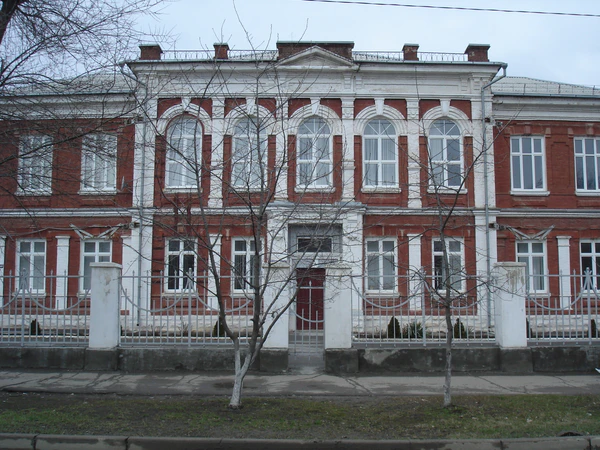 Когда было построено первое здание женской гимназии в станице Каменской сведений нет, но по некоторым данным, первый выпуск женской гимназии состоялся 7 июня 1908 года. После преобразования гимназии в полную, восьмиклассную (с приготовительным классом), началось строительства нового здания, которое начало действовать с сентября 1913 года. В здании были — учительская, канцелярия, раздевалка, учебные кабинеты и кабинет врача, гимнастический зал, а также квартира начальницы гимназии и комнат для сторожа. Первым директором гимназии была учительница немецкого языка — Мария Николаевна Кондратьева.[2]