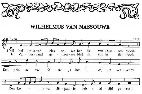 Своим мотивом «Wilhelmus» основан на французской солдатской песне популярной в 1560-е года и получившей дальнейшее развитие благодаря Адриану Валериусу, (прибл. 1575—1625)). Официальная версия была проработана с помощью Вальтера Бура (Walther Boer) и одобрена в 1932 году. Песня по стилю напоминает Rederijkers («риторов»), XVI века, компаний поэтов. Например, первые буквы 15 стихов образуют название «Вильгельм Ван Нассау» (в оригинале — «Willem van Nassov»).[1] Текст также тематически симметричный, в том, что стихи 1-й и 15-й похожи друг на друга по смыслу, по такой же схеме — стихи 2-й и 14-й, 3-й и 13-й, и т. д., пока все они не сходятся в восьмом стихе, так называемом «сердце песни» где и сравнивают Вильгельма с Библейским Давидом: «Подобно Давиду, вынужденному бежать от Саула, тирана». Строка «..den Koning van Hispanje heb ik altijd geëerd…» (с нидер. Так знай, король испанский: тебе лишь я служу.) говорит о верности Королю Испании. Следует пояснить, дабы избежать двусмысленности восприятия. Это относится к первоначальной лояльности ключевых фигур нидерландского восстания, графа Горн и графа Эгмонт, (которые вскоре, оба, были казнены) и уцелевшего принца Оранского (Вильгельма) к испанскому королю Фелипе II. Как утверждается, изначально, они всего лишь отвергали некоторые тяготы испанского владычества над Нидерландами, особенно в отношении налогообложения, политического гнета и религиозных преследований. Текст и мелодия песни на удивление мирные, как для национально-освободительно гимна. Het Wilhelmus получил своё название от первого слова песни. Полный оригинальный текст очень длинен (15 строф).[2] Первая строфа, как правило, обычно поется в официальной обстановке: