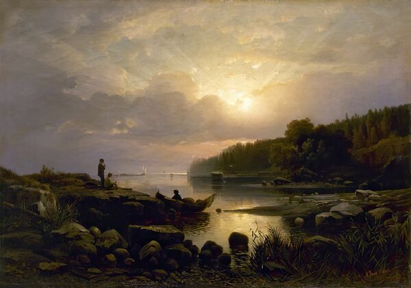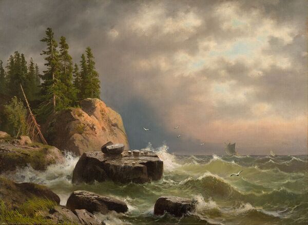 Сюжетами для своих картин Гине избрал берега Финского залива и Валаам на Ладожском озере. В 1858 году им написан «Вид на Финском заливе (м. Дубки)», в 1859 году — три вида из окрестностей Петербурга (этюды), «Вид Финского залива, близ Петербурга», а также «Берег Финского залива», за которую он получил большую серебряную медаль.
