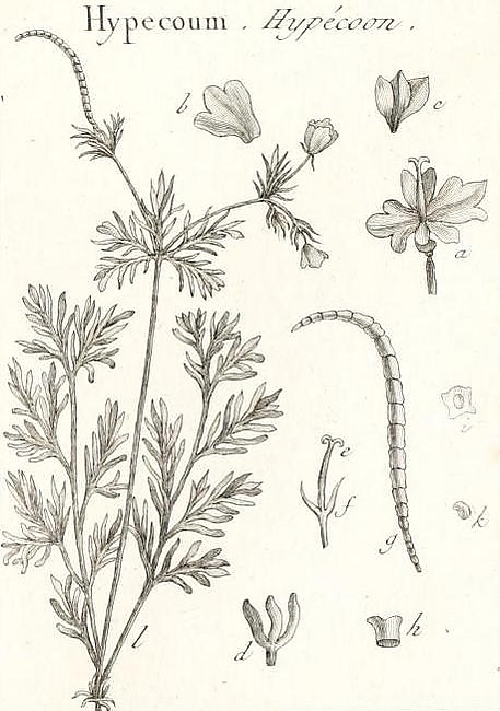 Род Гипекоум представлен невысокими однолетними, редко двулетними травянистыми растениями с ярко выраженным стержневым корнем.