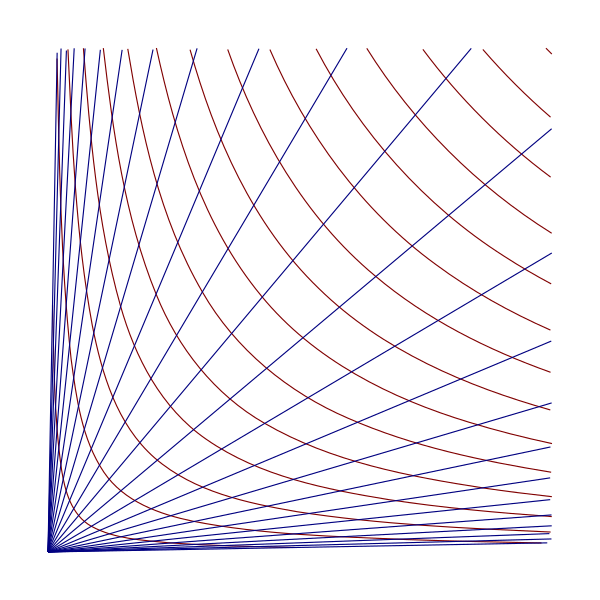 Параметр u представляет собой гиперболический угол к (x, y), в то время как v — среднее геометрическое x и y.