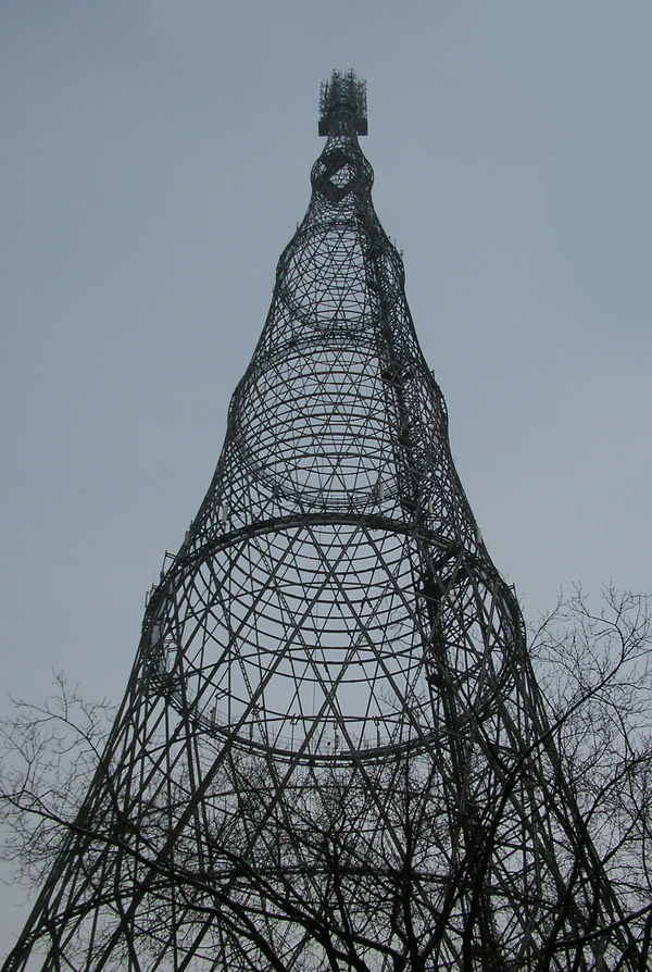 Дальнейшей модификацией идеи сетчатых гиперболоидных конструкций стала конструкция радиобашни на Шаболовке в Москве, построенной Шуховым в 1919—1922 гг. Первоначальный проект высотой 350 м из-за дефицита металла был заменен 150-метровым вариантом, который эксплуатируется и поныне[1]. В течение своей жизни Шухов построил более двухсот гиперболоидных башен различного назначения.