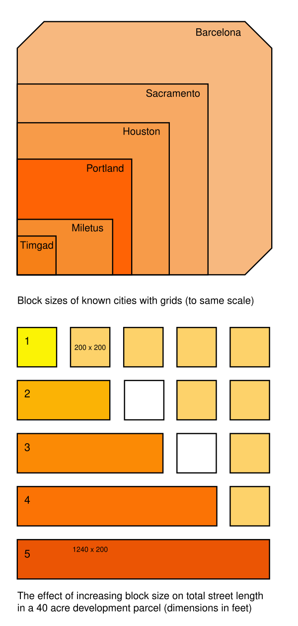 Гипподамова система предполагала идентичные кварталы (100×40 м). Главные улицы были перпендикулярны друг другу, у каждого квартала было 10 дворов. Полное равноправие застройки, демократическая сетка. Городская стена была прихотлива (волнистая). Жилые кварталы, одинаковые по размерам, разделялись пополам проходом, в котором были устроены траншеи канализации, перекрытые плитами. Прямые улицы (если позволял рельеф) были ориентированы по сторонам света. К главной улице примыкала агора. Театры и стадионы строились за пределами жилых кварталов.