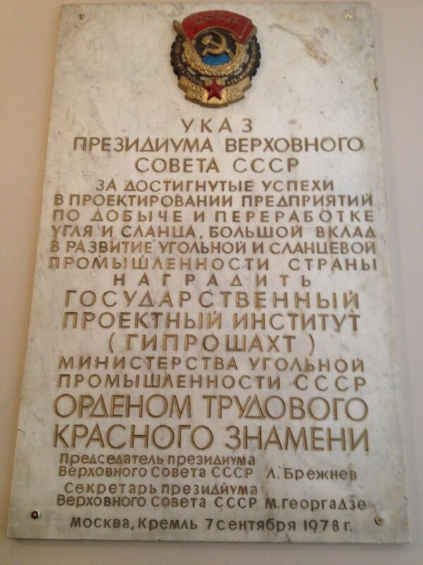 В 1978 году, за достигнутые успехи в проектировании предприятий по добыче и переработке угля и сланца, Государственный проектный институт «Гипрошахт» был награждён орденом Трудового Красного Знамени.